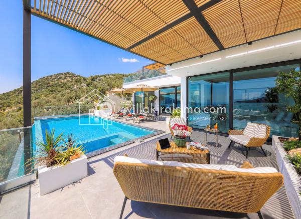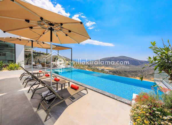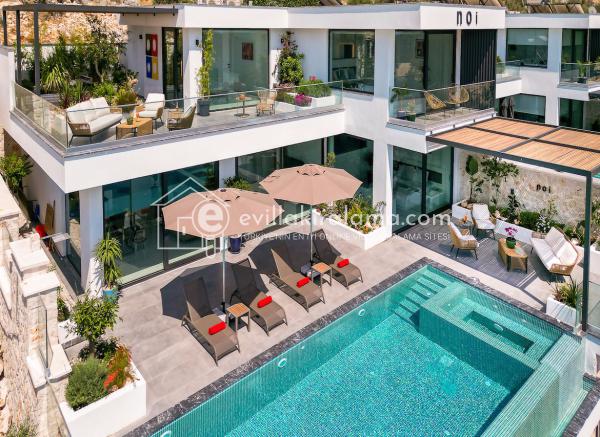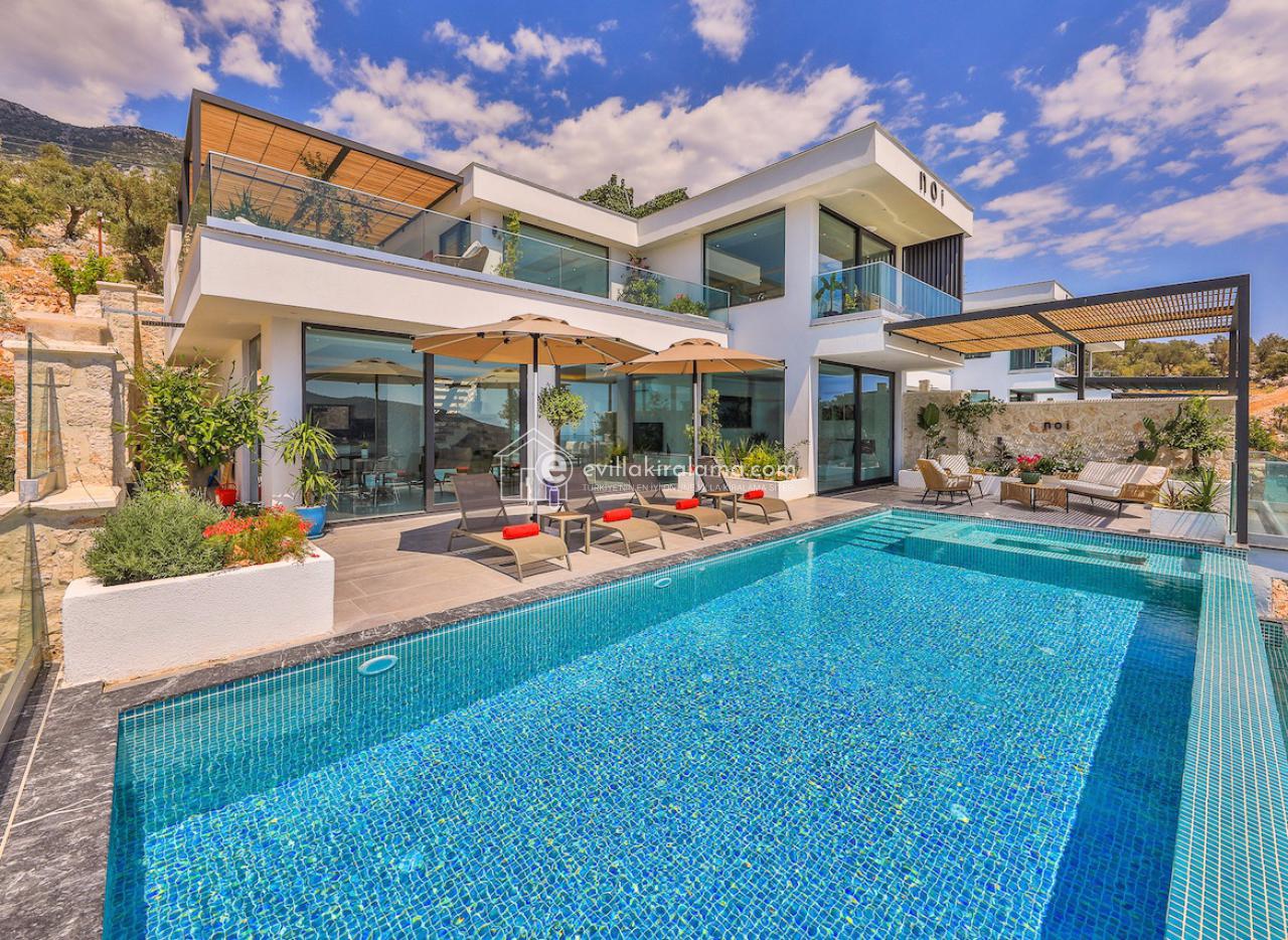 Villa Nom, Kalkan Ulugöl bölgesinde yer alıyor ve muhteşem bir deniz ve doğa manzarasına ev sahipliği yapıyor.