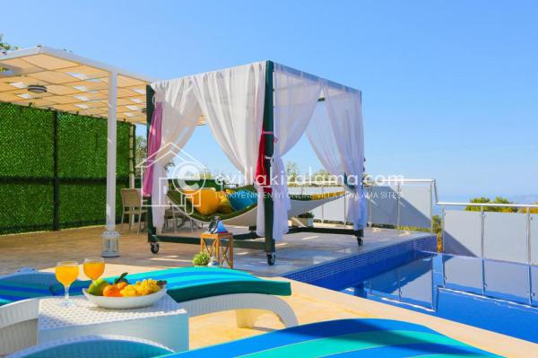 Villanın Aliye'nin ferah, korunaklı havuz terası ve bahçe alanı tatilin tadını çıkarmanız için mükemmel bir mekan. Havuz terasında bulunan barbekü alanı, ailenizle veya sevdiklerinizle keyifli vakit geçirebileceğiniz ve lezzetli ziyafetler verebileceğiniz bir ortam sunuyor.