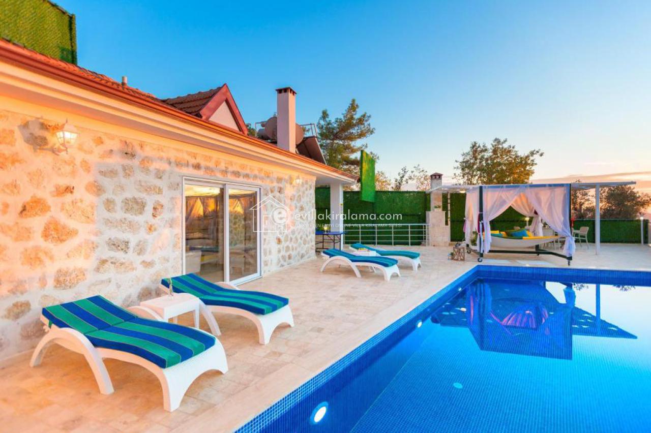 Modern taş mimari tasarımı ile korunaklı konsepte uygun olarak inşaa edilmiş olan villamız, balayı çiftleri için idel bir tatil rotası..