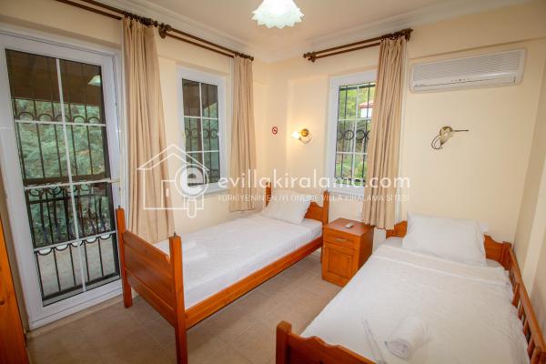 2. Oda: 2 adet tek kişilik yatak, klima, gardrop, ortak banyo, balkon