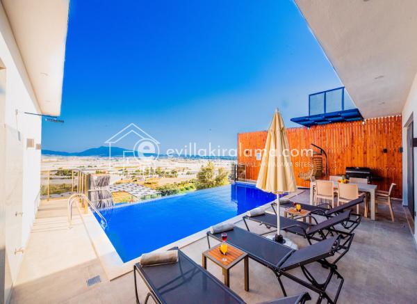 Ortak alanda ise mutfak, salon, klima ve televizyon yer almaktadır. Villamızda açık havuza ilave olarak ısıtmalı kapalı havuz bulunmaktadır. Gözlerden uzak veya dinlendirici bir balayı tatili geçirmek isterseniz bu villa ideal bir seçenektir.