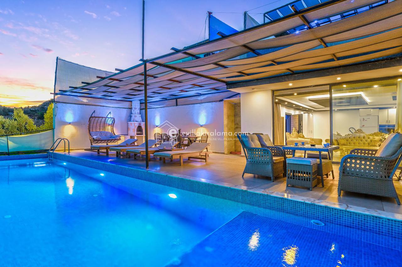 Villa Cezir, korunaklı havuz terası ve bu alanda yeralan barbeküsü ile dost ve sevdiklerinizle birlikte Akdenizin mavi sularının tadını doyasıya yaşama olanağını sunuyor.