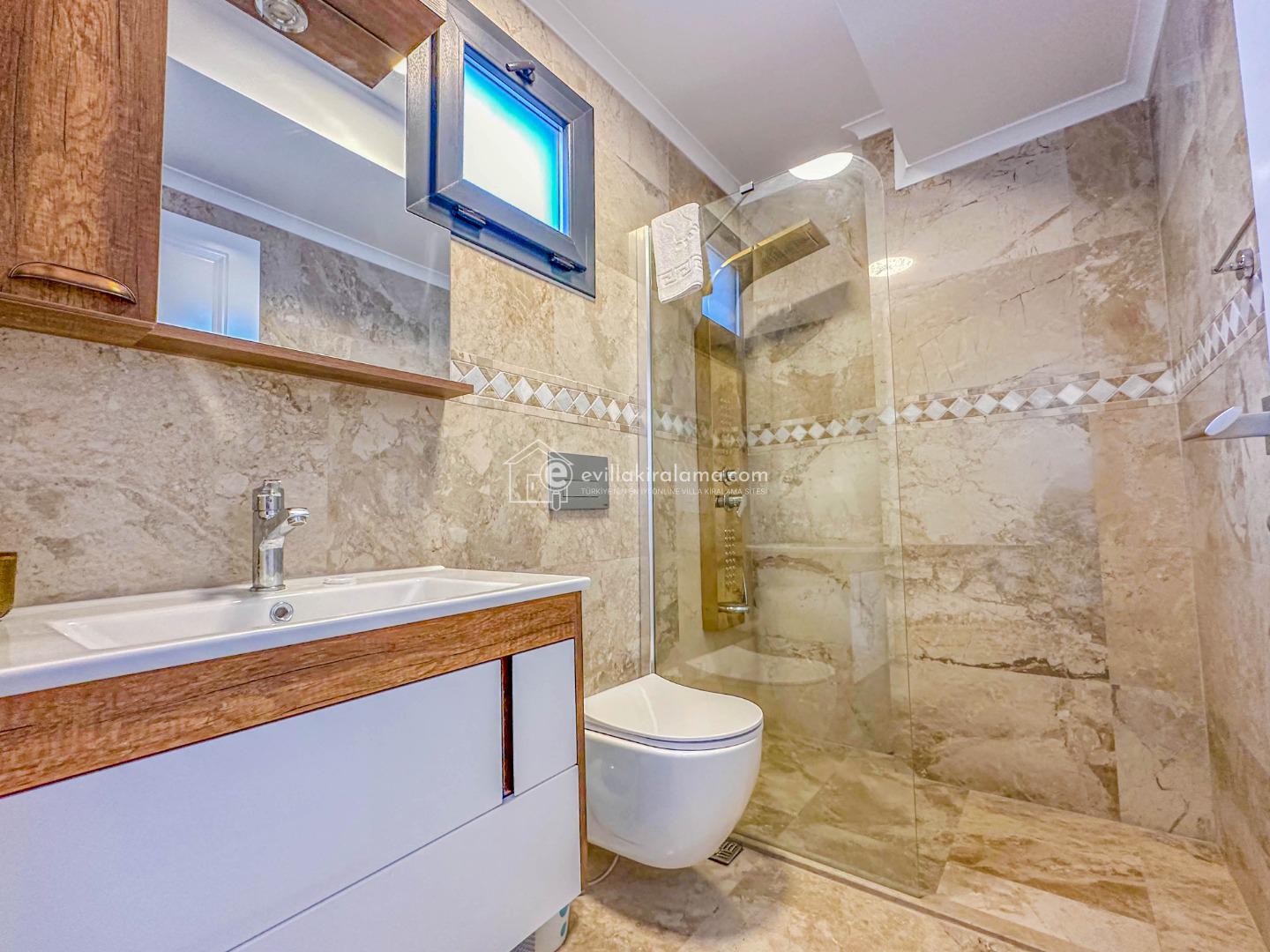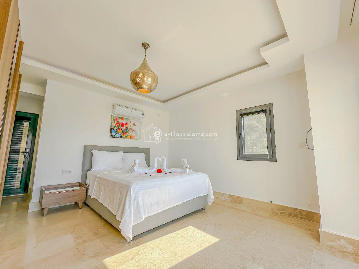 Her biri çift kişilik yataklı 4 suit yatak odası; klima, gardırop, komodin, özel banyo ve balkona sahiptir. Özellikle kalabalık aileler veya arkadaş grupları için oldukça uygundur.