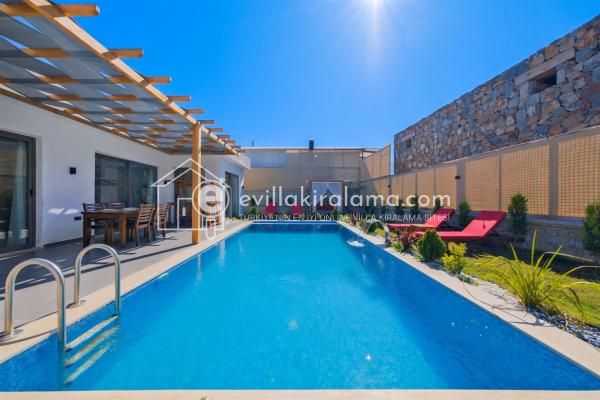 Villanın dış mekanı, geniş bir yüzme havuzu ve terası ile donatılmıştır, bu havuz terası korunaklı yapısı ile güvenilir ve rahat bir yüzme alanı sunarak tatilinize serin ve keyifli anlar katmaktadır.