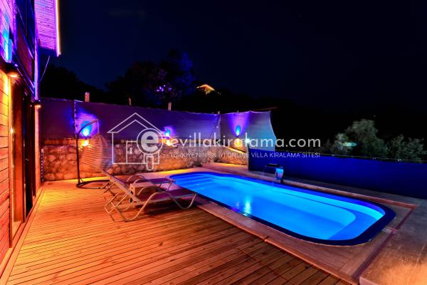 Villamız'ın geniş ve korunaklı havuz terasında keyifli vakit geçirebilir, manzaranın tadını çıkarabilir ve özel yüzme havuzunda serinleyebilirsiniz.