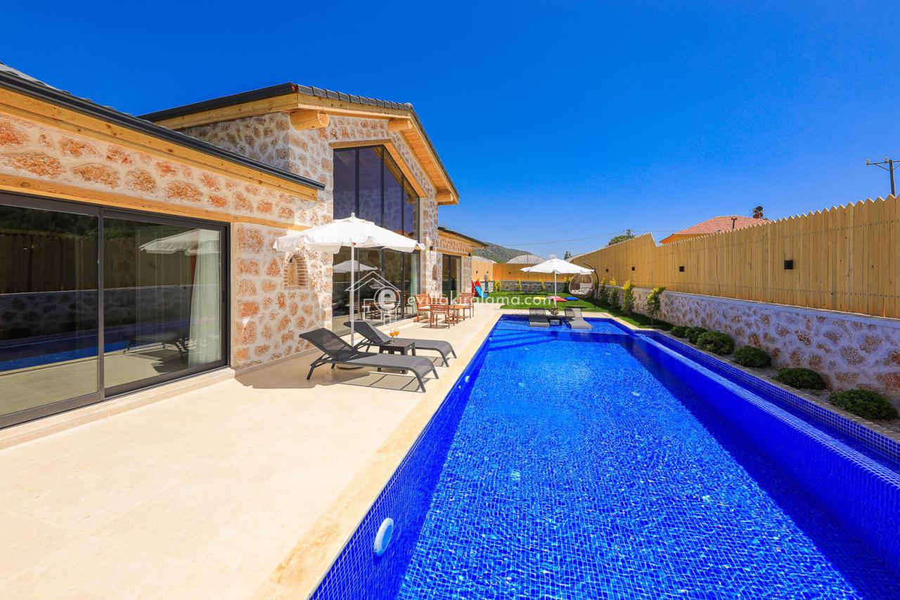Villa Rest, taş ve ahşap mimari tasarımıyla sıcak ve huzur dolu bir atmosfere sahip. Villamızın geniş iç ve dış yaşam alanları şık ve modern şekilde dizayn edilmiş.