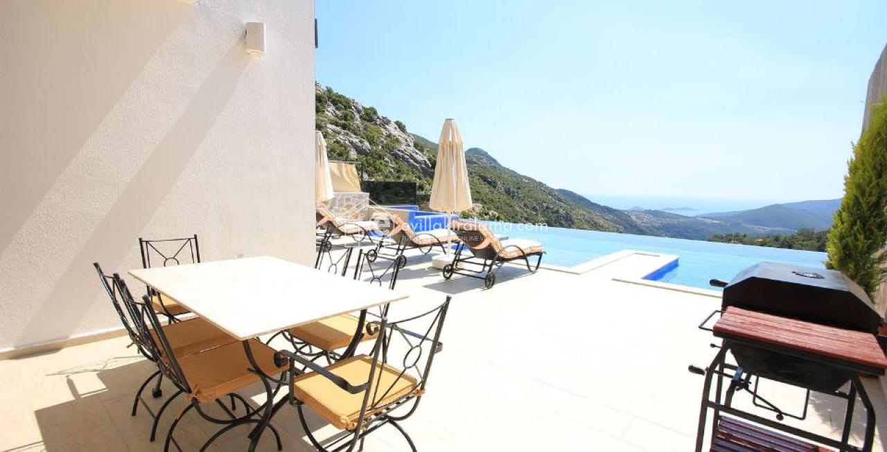 Kalkan İslamlar bölgesinde muhteşem bir manzaraya sahip olan Villa seval ‘in havuz ve terası dışarıdan görülmez. Bu haliyle gözlerden uzak tatil yapmak isteyen misafirlerimiz için oldukça elverişlidir. Panoramik deniz ve doğa manzarasına sahip villamızın, havuz terası ferah ve geniştir. Villamızda iki adet yatak odası ve iki adet banyo bulunmaktadır. 4 kişiye kadar kalınabilir. Kültür ve Turizm BakanlığıBelge No : 07-2322