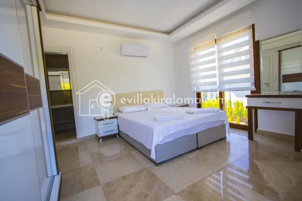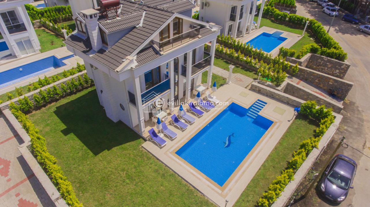 Villaya ait korunaklı özel yüzme havuzu, dışarıdan görünmeyecek şekilde tasarlanmıştır ve muhafazakâr tatil tercih eden misafirler için uygundur. Havuz terasında şezlonglar, güneş şemsiyeleri, barbekü alanı, açık duş, 6 kişilik bahçe masası ve özel otopark bulunmaktadır. Bahçe ve havuz temizliği her sabah düzenli olarak yapılır.