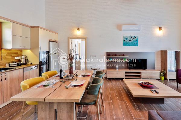 Villamız kalabalıktan uzak izole bir tatil için tam donanımlı mutfak ve tatil keyfinizi tamamlayıcı detaylar ile ihtiyacınız olan her şeyi bir arada bulabileceğiniz keyifli ve güvenli bir tatil imkanı sunuyor.