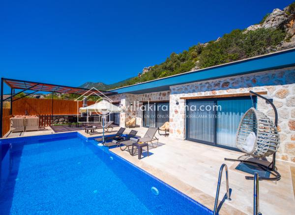 Villa Turan, Kaş Aklar köyünde doğa içinde konumlanmış, deniz manzaralı bir tatil mekanıdır.
