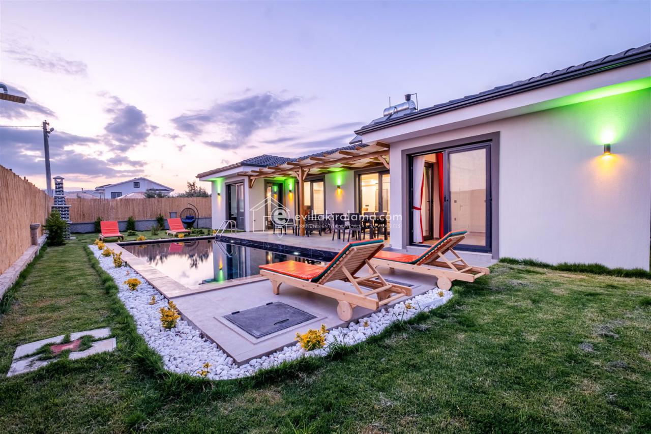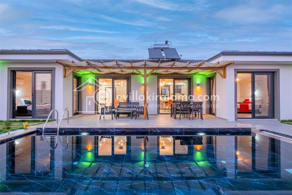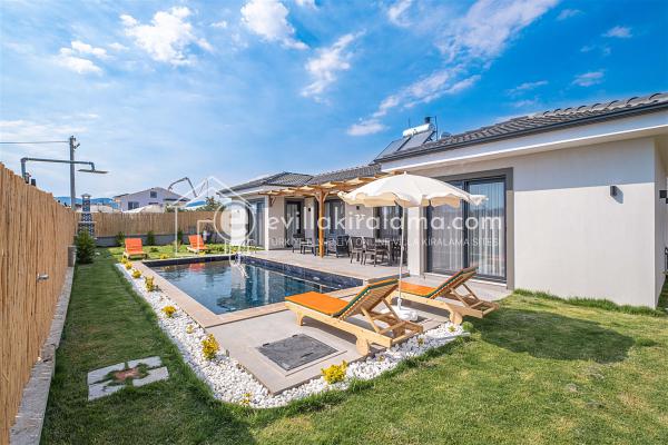 Villa Tutkum'un geniş ve ferah yaşam alanları, size evinizdeki konfor ve rahatlığı aratmayacak tüm detaylarla şık ve modern bir tarzda dizayn edilmiş.