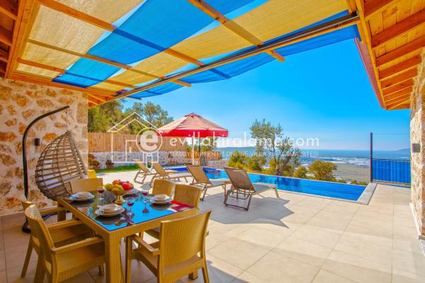 Villamız'ın geniş ve korunaklı havuz terasında keyifli vakit geçirebilir, manzaranın tadını çıkarabilir ve özel yüzme havuzunda serinleyebilirsiniz.